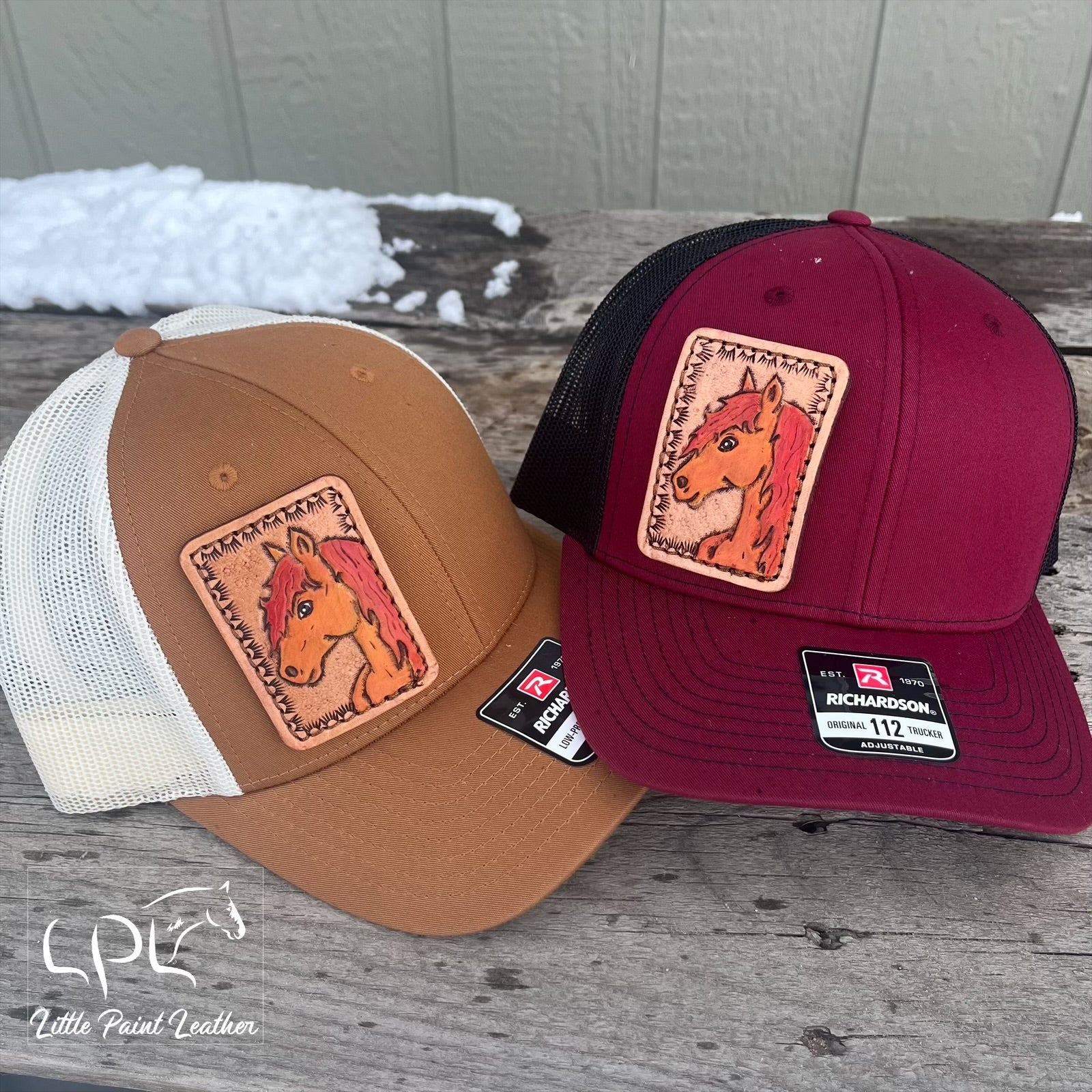 Super cute hat with one of our leather patches that's been hand tooled and painted!