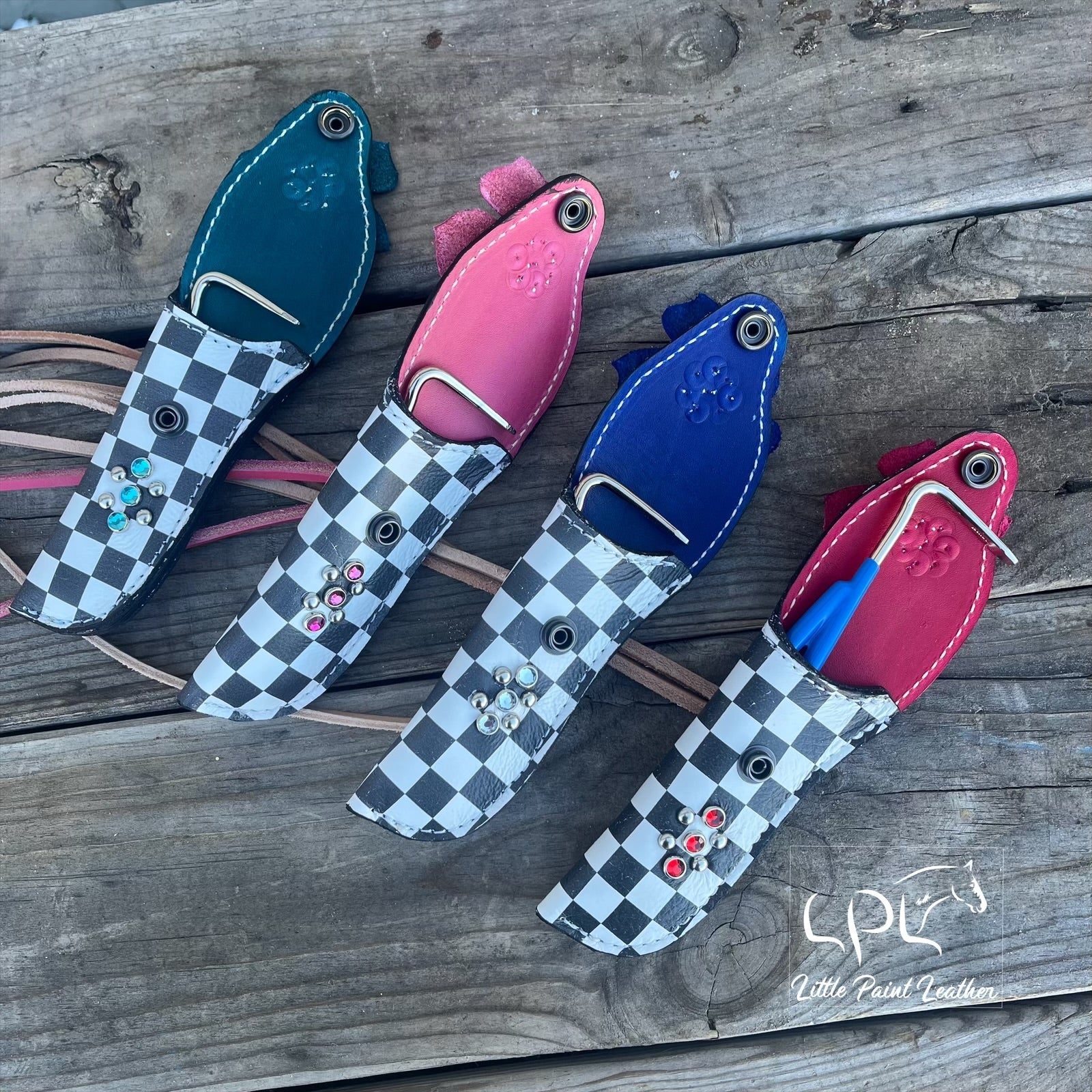 Tired of a hoof pick holder you can only attach to your back cinch? Wish you had a saddle that came with one? We designed our hoof pick holders to be attached anywhere you can tie them so you can put them on any saddle! Plus who doesn't love adding a little pop of color to their ride?!