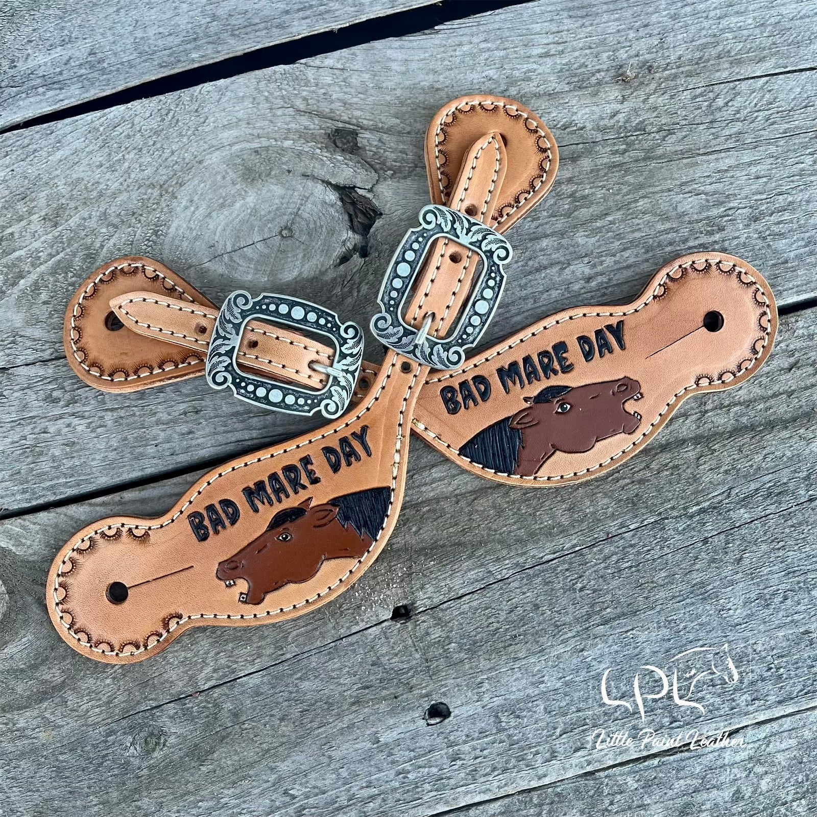 Spur straps adjust about 8" to 11" from button hole to button hole.