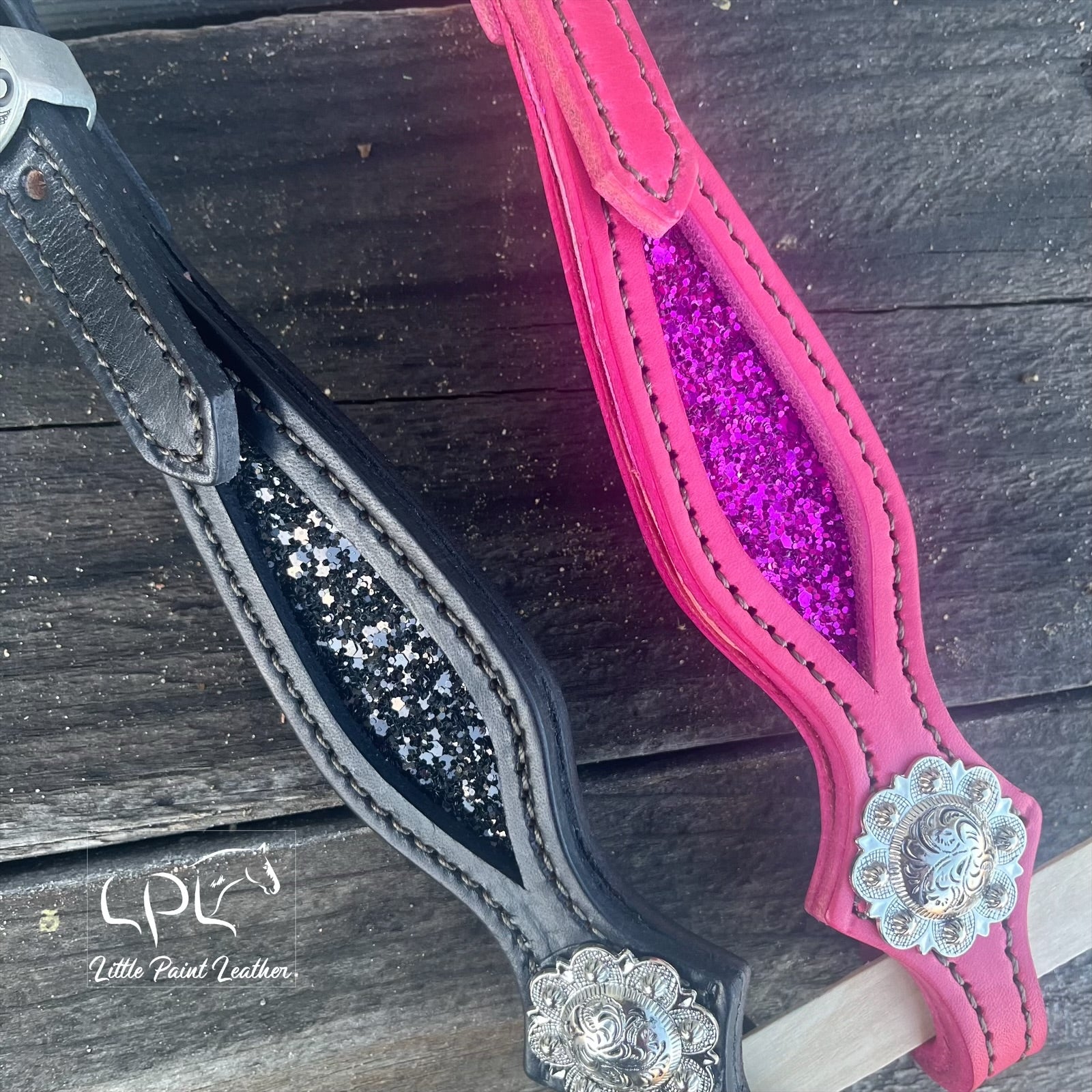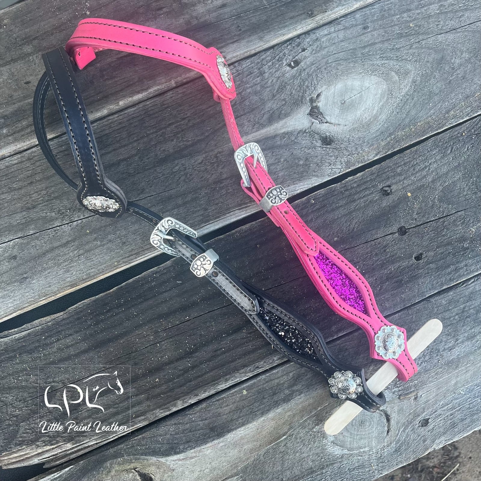 • Load image into Gallery viewer, Black & Pink Glitter Double Ear Headstall