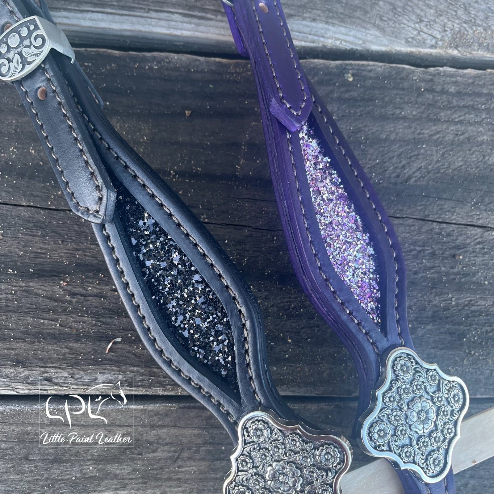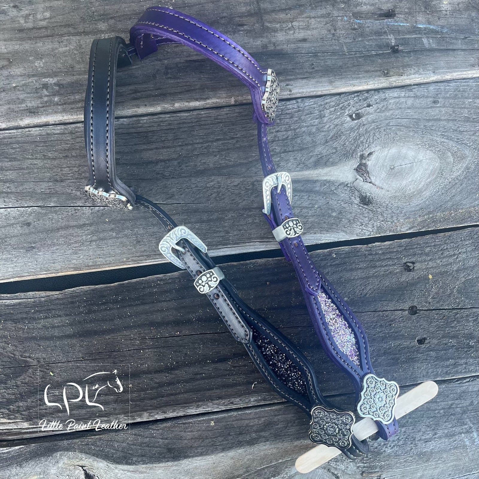 • Load image into Gallery viewer, Black & Purple Glitter Double Ear Headstall