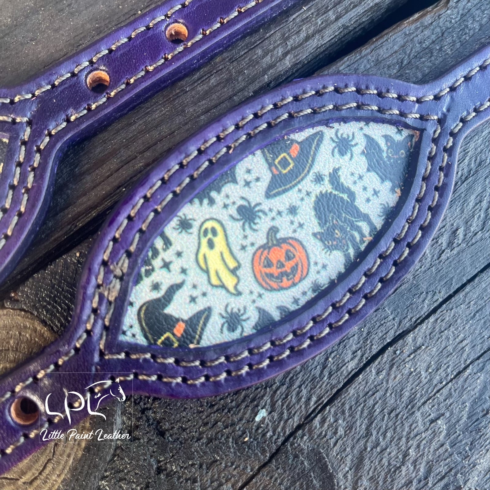 These stirrup hobbles are a great way to dress up your saddle! These attach to the leathers above your stirrup on your western saddle. Dark purple dyed leather with marine vinyl inlay.