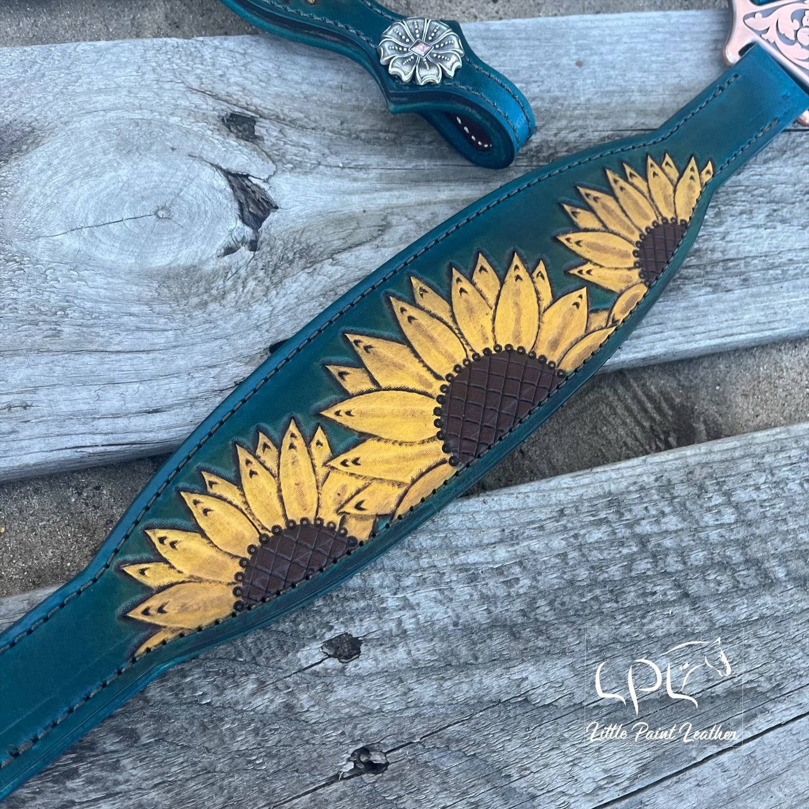 -Hand tooled and painted sunflowers